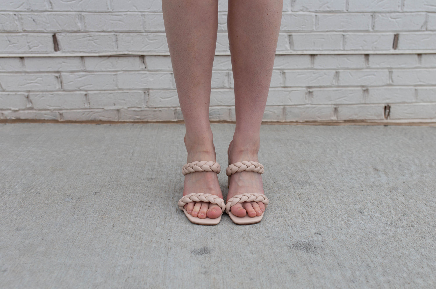 Women's Double Braided Strap Slip on High Chunky Heeled Open Toe Sandals