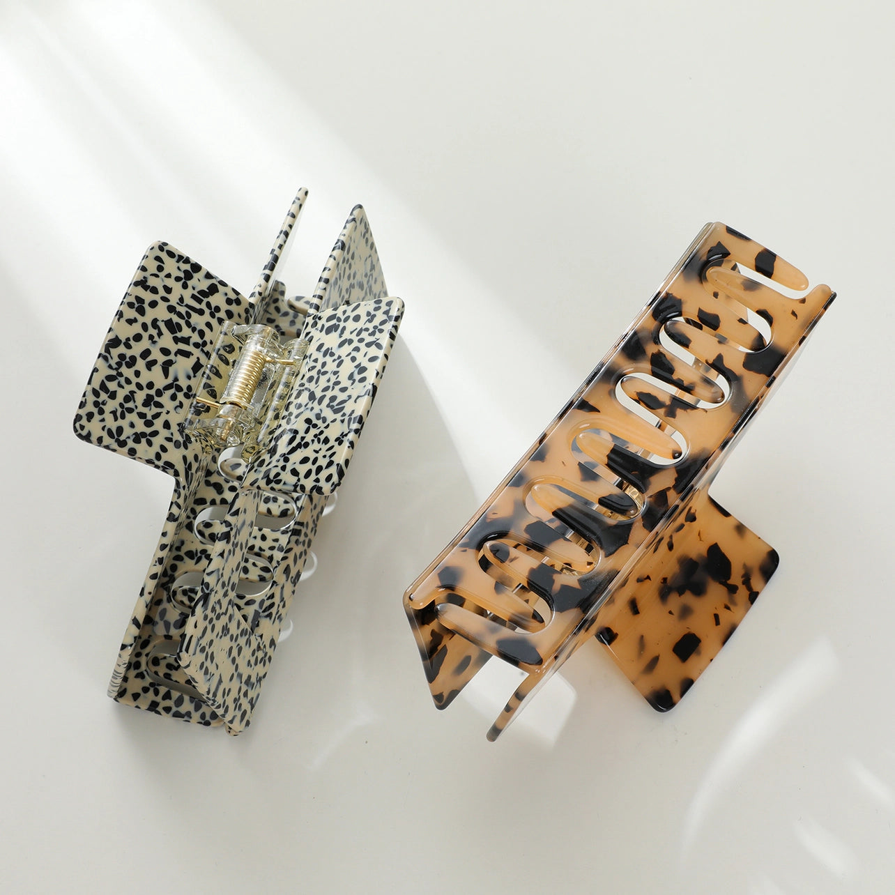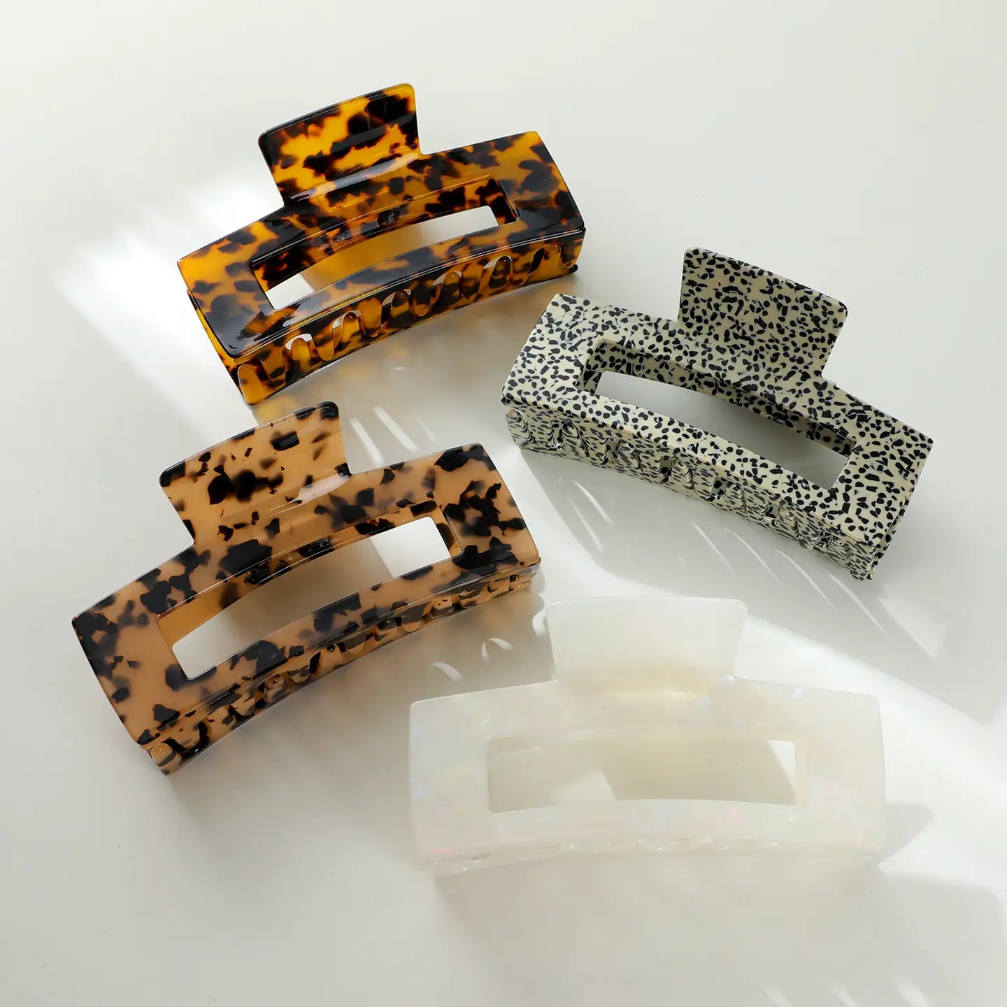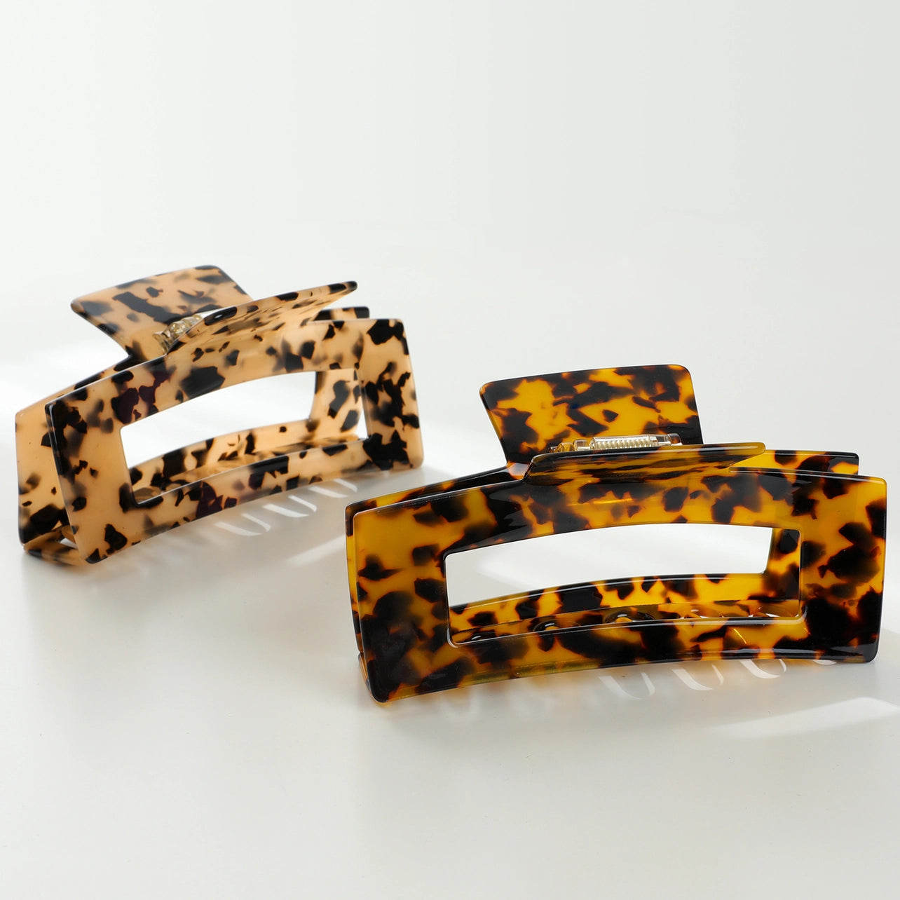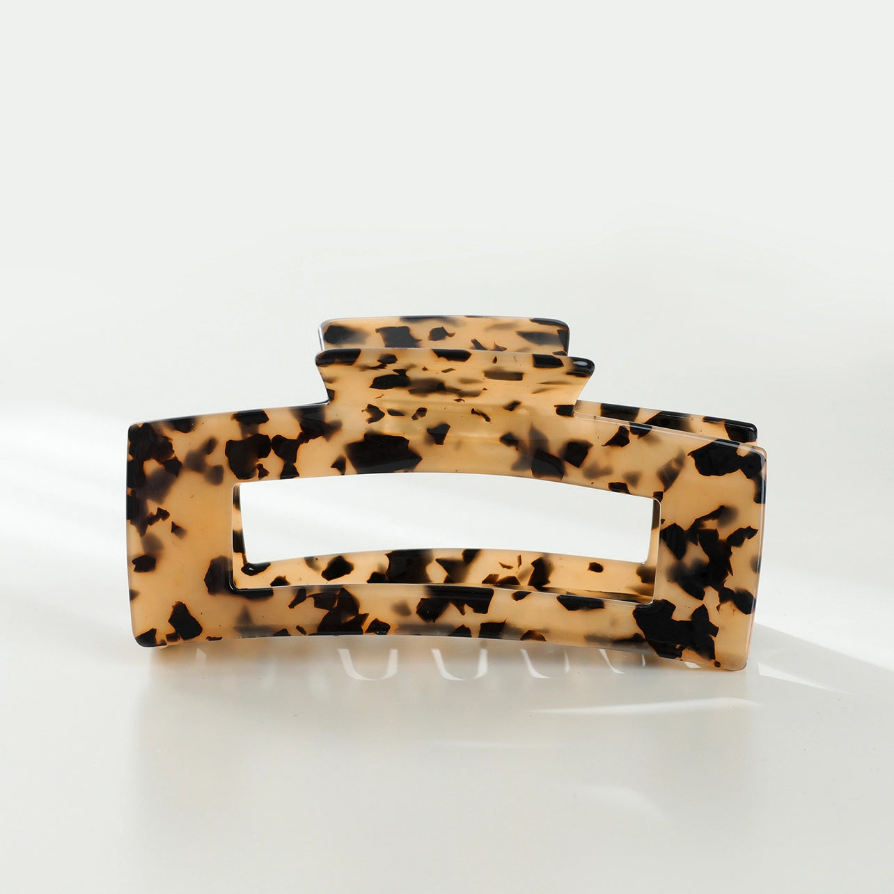 Featuring a hollow rectangular shape, this 5-inch claw clip will hold thick med/long hair. Available in our core colors: tortoise, blonde tortoise, pearl, and speckle black/beige. Made with eco-friendly material that is both durable and comfortable.